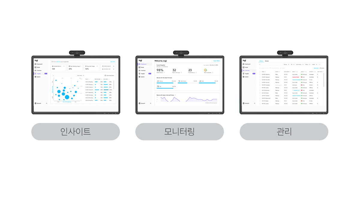 로지텍 Sync로 단일 플랫폼에서 회의실 장치를 모니터링 및 관리해 보세요.