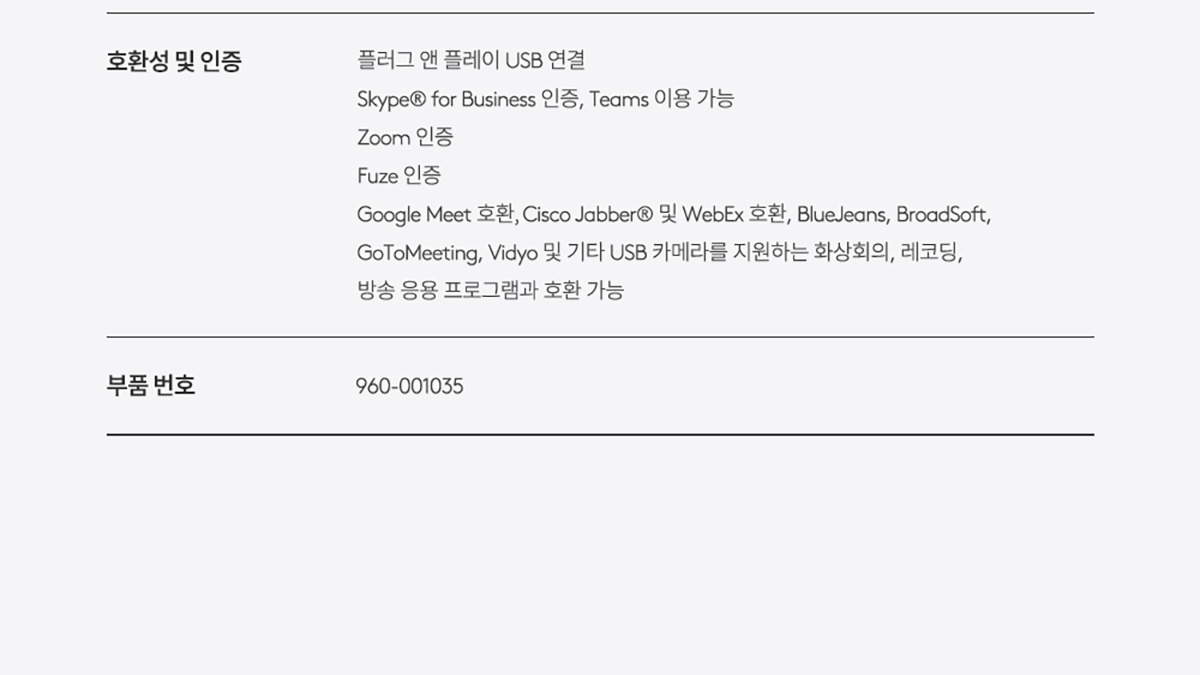 | 제품명 | CONNECT 컴퍼런스 화상회의 웹캠 |