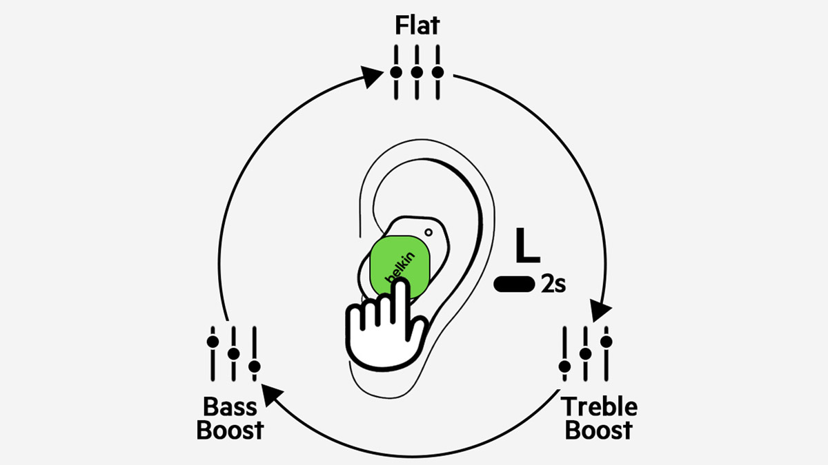각 이어버드 별로 2개씩 탑재된 마이크와 벨킨에서 설계한