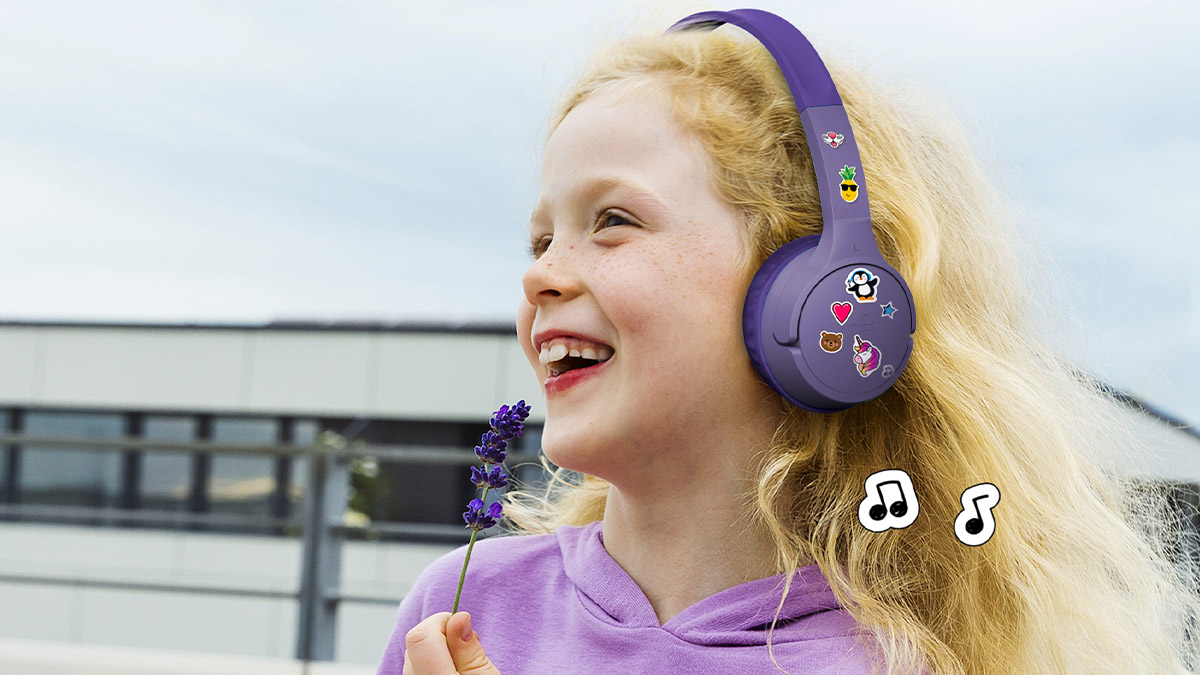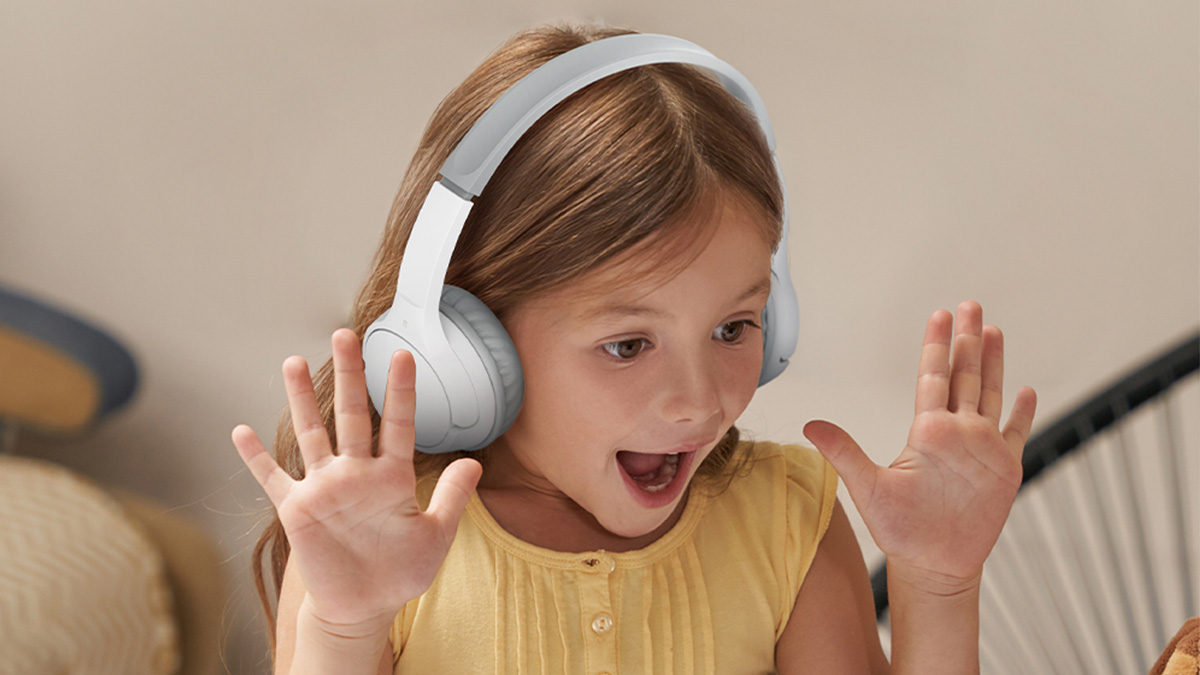 85dB 볼륨 제한으로 아이들의 귀를 안전하게 보호할 수 있는 어린이용 블루투스 헤드폰입니다.