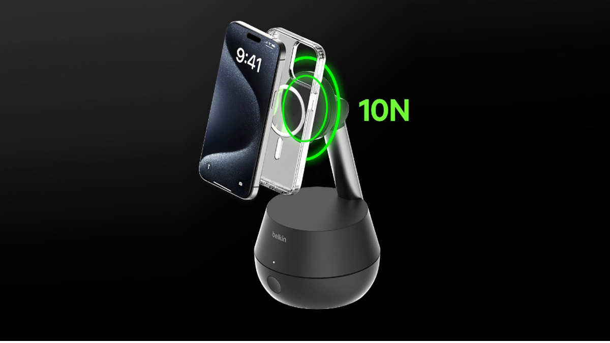 10N의 힘으로 스마트폰을 튼튼하게 고정한 상태로 맥세이프 무선 고속 충전이 가능하며,