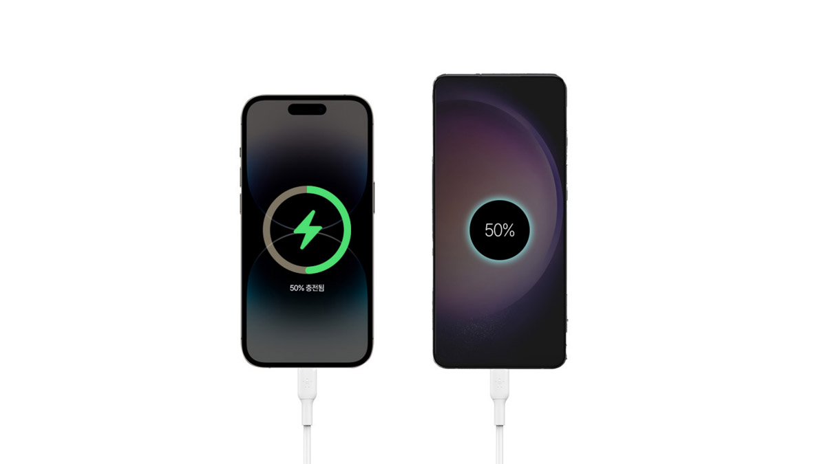 아이폰 14 프로를 25분 안에 50%까지 충전하며, 방전된 상태의 갤럭시 S23 울트라를 23분 만에 50%까지 고속 충전할 수 있습니다.