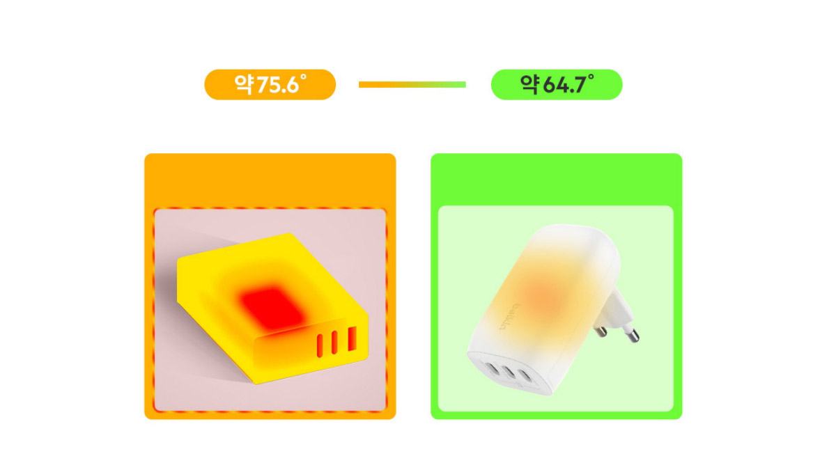 나노 방열 기술을 적용한 저발열 설계로 장시간 사용해도 디바이스를 안전하게 충전합니다.