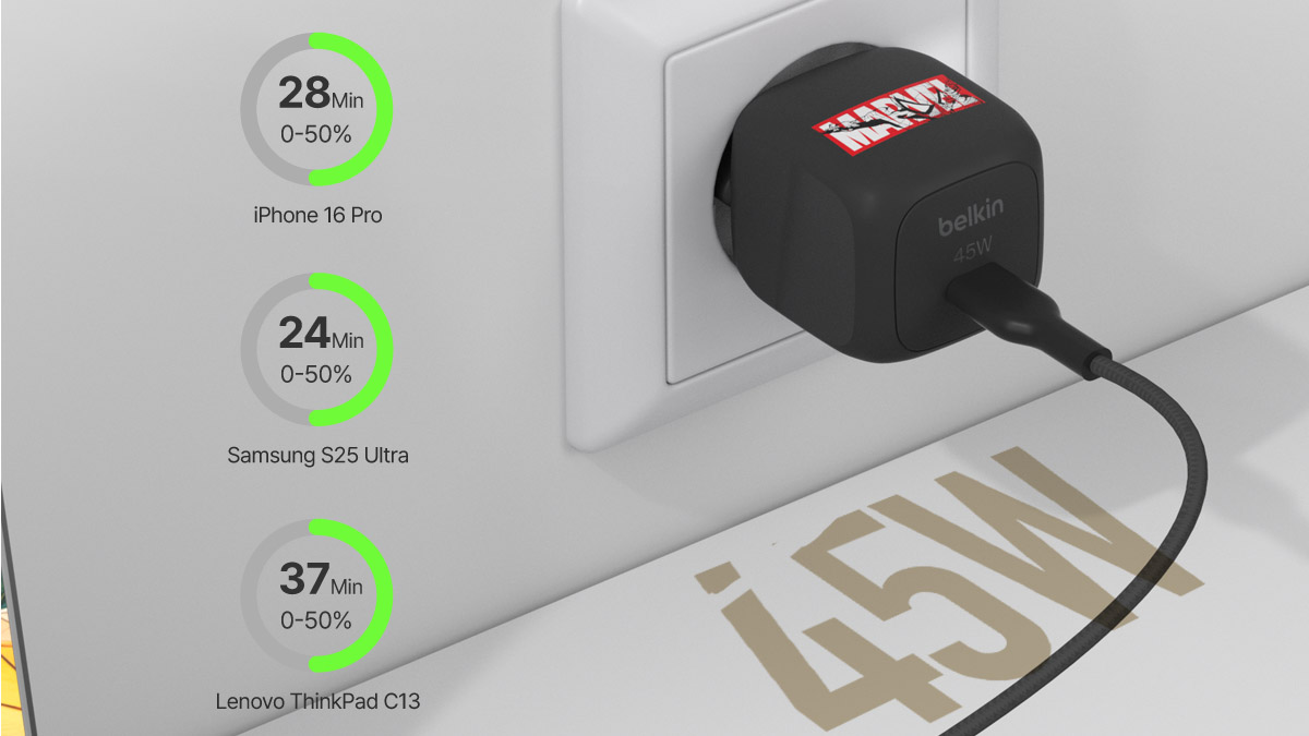 - 마블 초소형 고속 충전기 USB-C 45W : 33mm x 34mm x 77mm, 63g