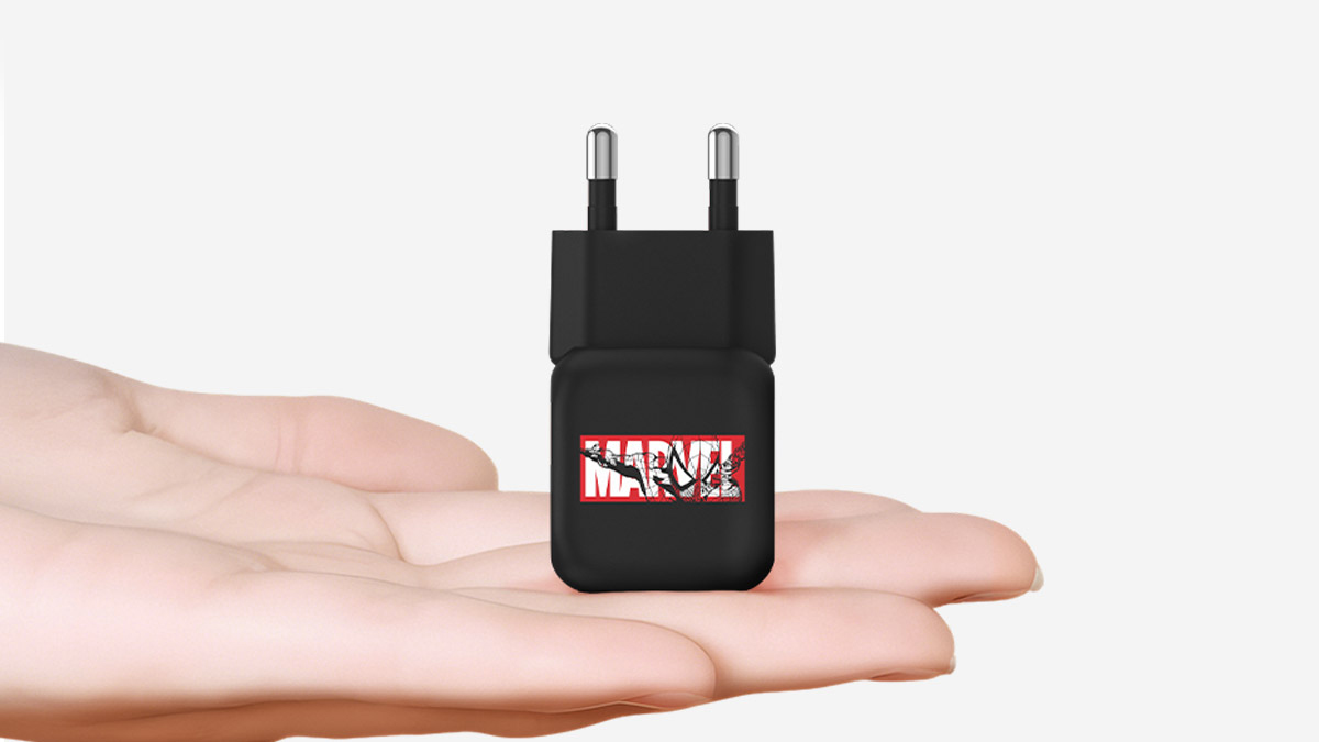 별도 구매 옵션으로 구매할 수 있는 마블 초소형 고속 충전기 USB-C 45W입니다.