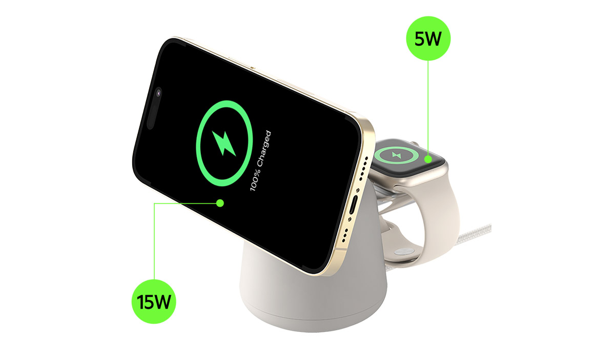 iPhone과 Apple Watch를 최대 15W 속도로 무선 충전할 수 있습니다.