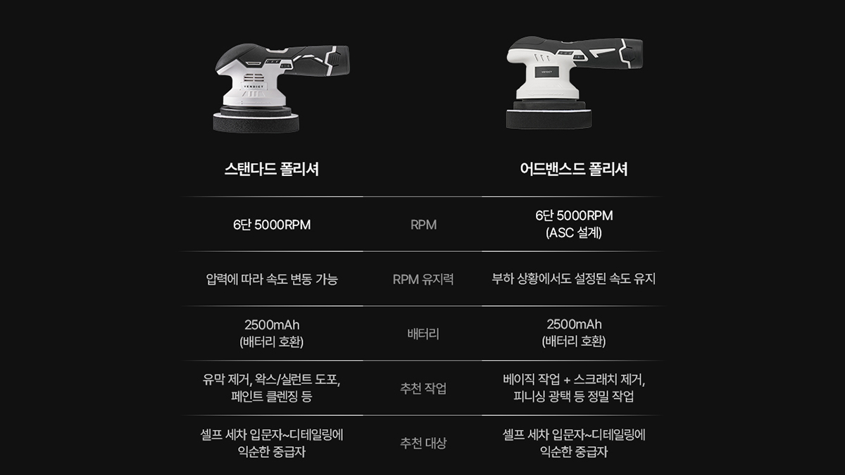 스크래치 제거와 피니싱 광택 작업에 최적화된 어드밴스드 모델