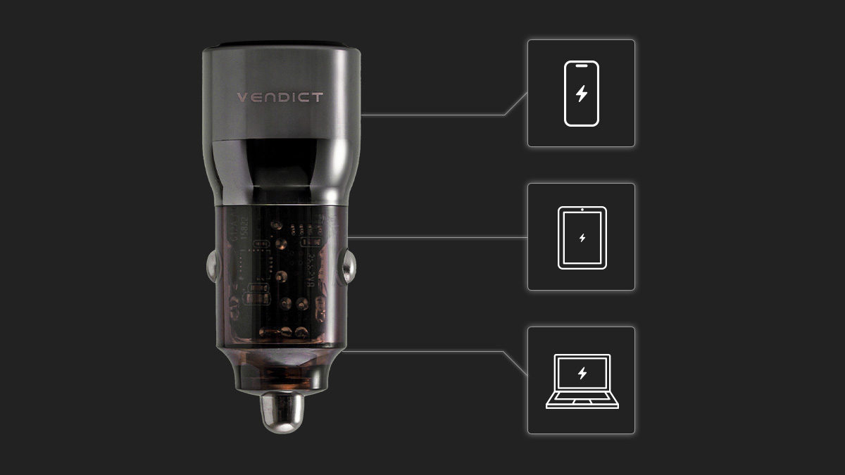 최대 100W 출력과 고급 아연합금 바디로 완성된 차량용 시거잭 충전기입니다.