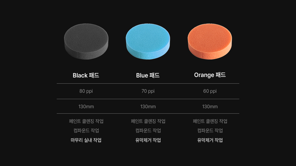 ※ ppi란 패드의 거칠기를 나타내며, ppi가 높을수록 부드럽고, 낮을수록 거칠어집니다.