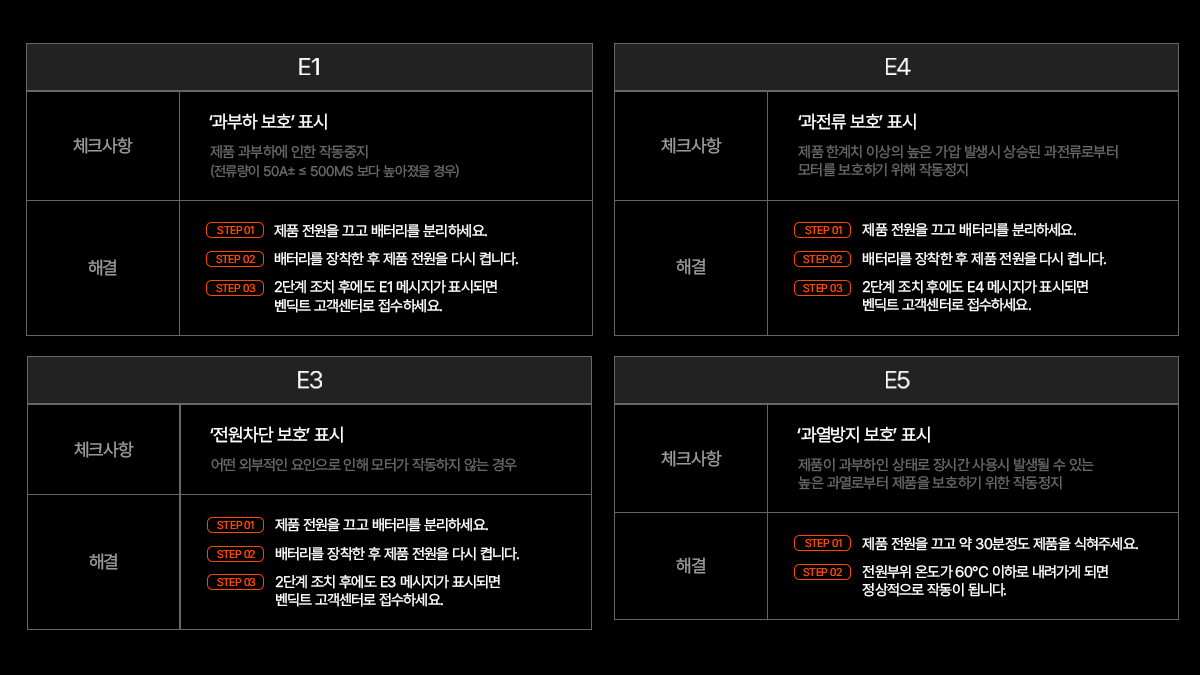 과부하·과전류·출력 단락·입력 저전압 보호 기능을 탑재하여, 배터리를 최적의 상태로 유지하고 성능 저하를 미리 방지합니다.