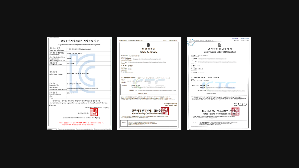 | KC 인증 필 유무 | - 18V 디바이스 : R-R-Wb5-VDT-P18W (전자파 적합 인증) - 4,000 배터리팩 : YU101460-21003 (전기 안전인증) - 6,000 배터리팩 : XU103060-23002C (전기 안전인증) - 충전기 : HU073237-23002A (안전인증) - 충전기 : R-R-XJT-DC18RC (전파인증) |