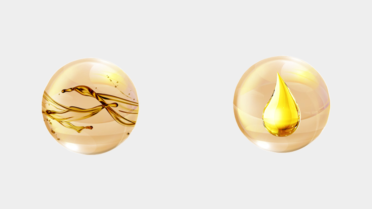 ※합성에스터오일(좌) - 점도 유지력이 높고 불순물이 없어 용해력이 우수, 엔진 오일에 우수한 저/고온 안정성 제공