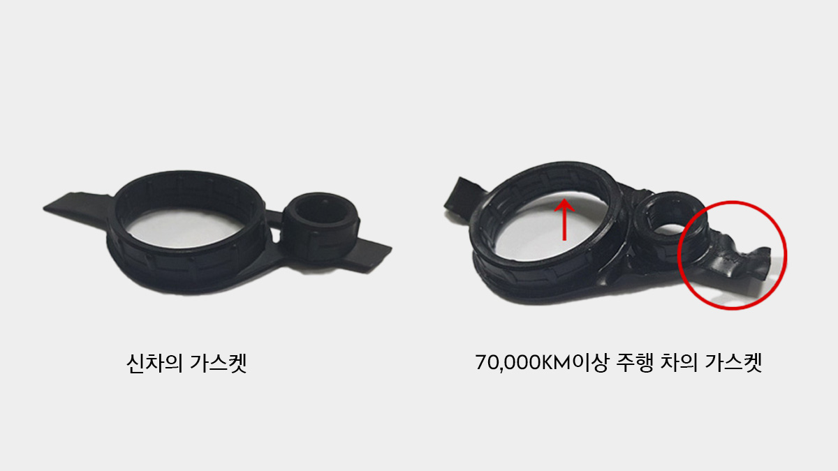 고온·고압의 엔진 환경에서는 가스켓과 고무 씰이 시간이 지나며 점차 경화되고 탄성을 잃게 됩니다.