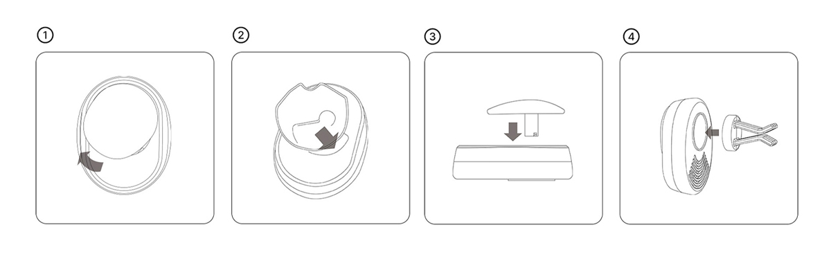 장착한 클립 가까이에 심포라 방향제를 가져다 대면 자석으로 자동 결합됩니다.