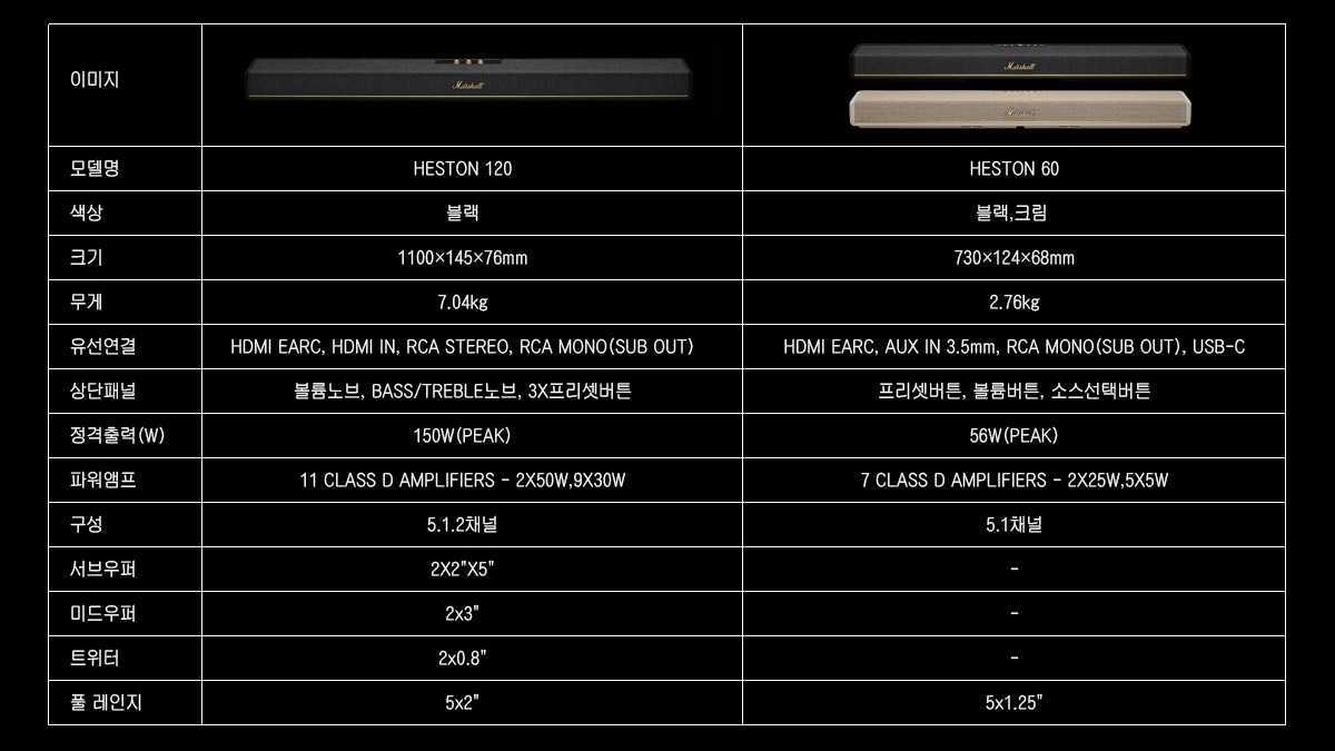 HESTON은 마샬 앰프에서 영감을 받은 디자인과 60년 넘게 발전해 온 사운드 기술이 결합되어, 음악과 영화에 더욱 깊게 빠져드는 경험을 제공합니다.