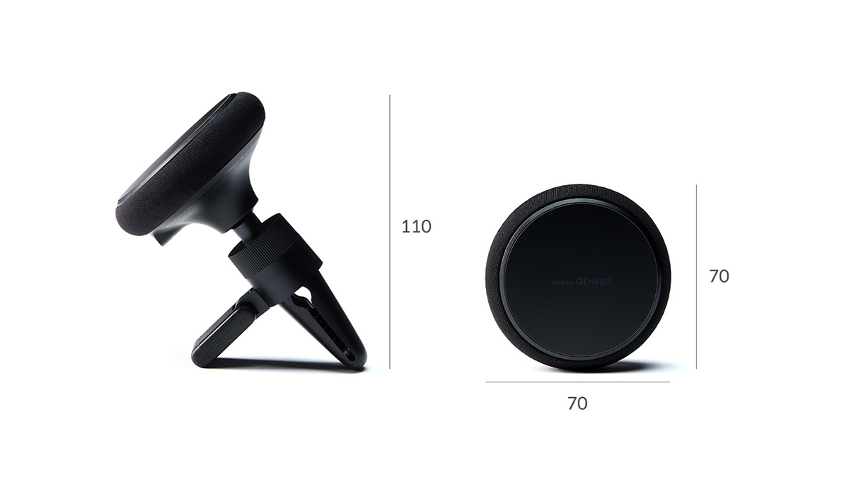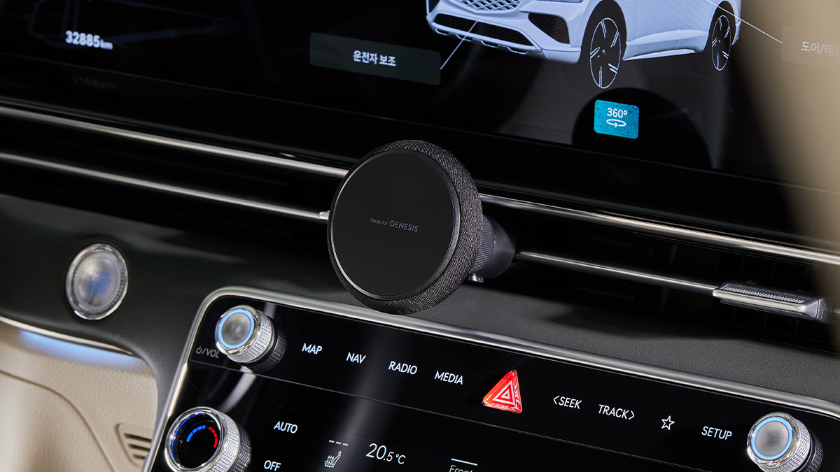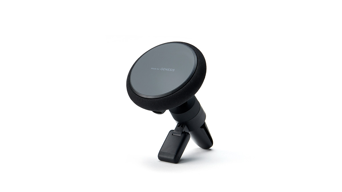 라운디드 맥세이프 거치대의 미니멀한 디자인은 제네시스의 디자인 정체성을 반영합니다.