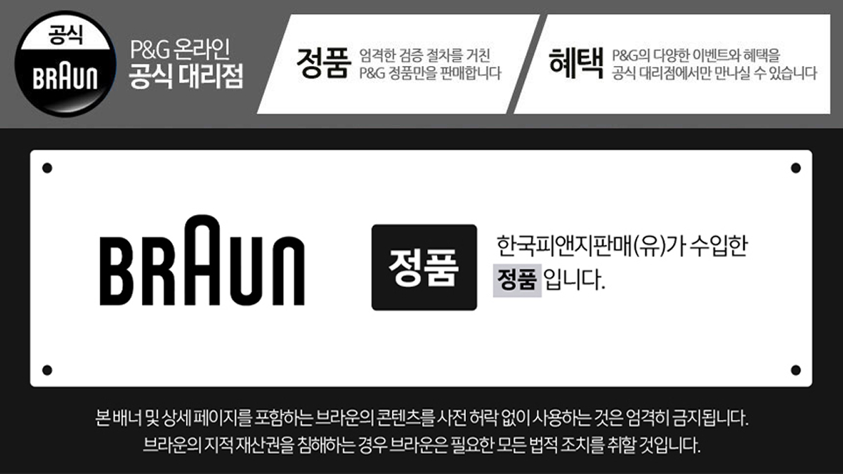브라운의 국내 공식 수입사는 '한국피앤지판매(유)'입니다.