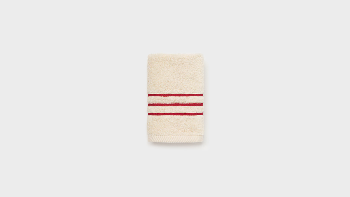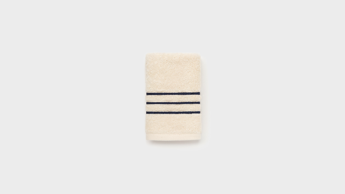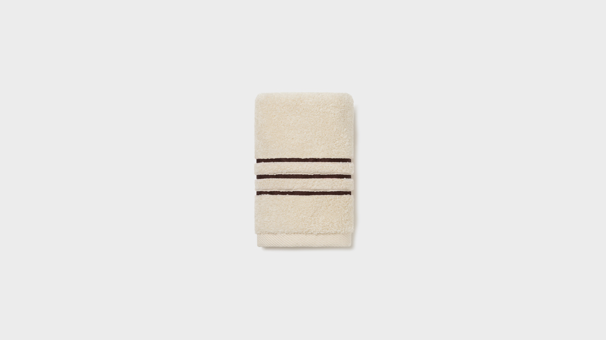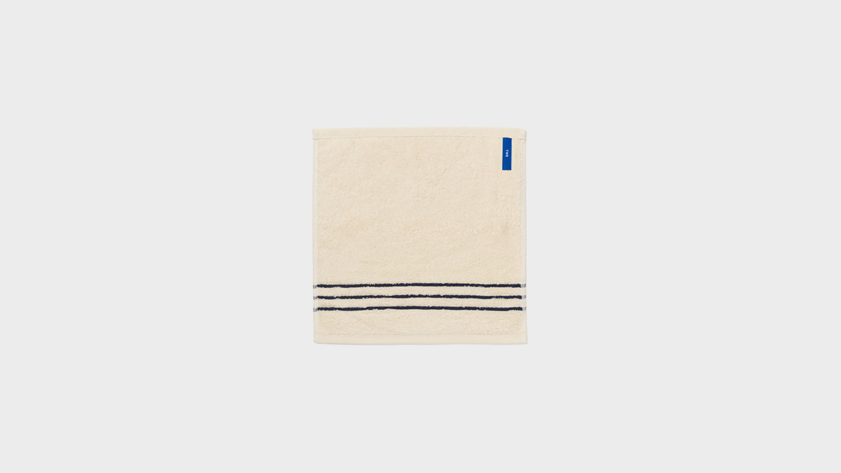 염색하지 않은 목화 본연의 색상의 베이스와 세 줄의 스트라이프가 인상적인 핸드 타월 세트입니다.