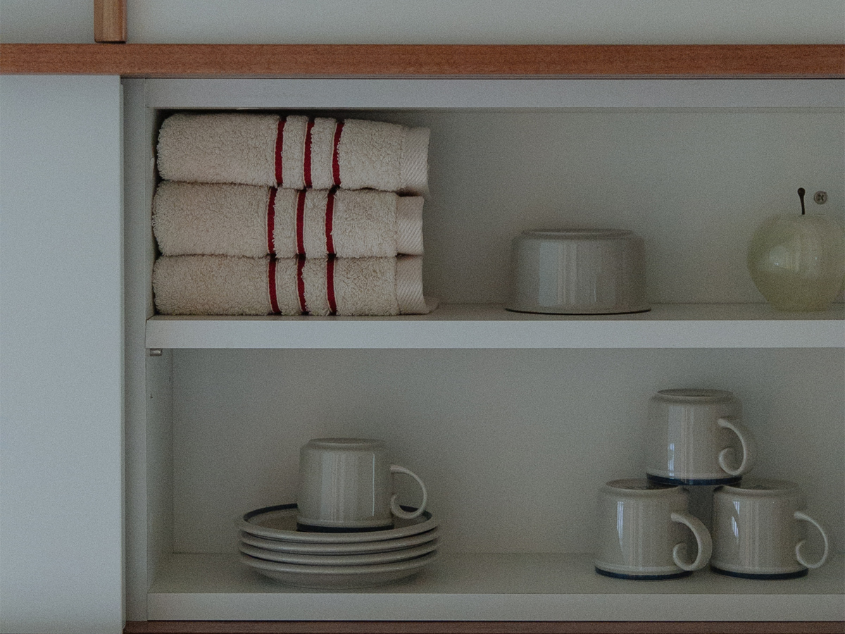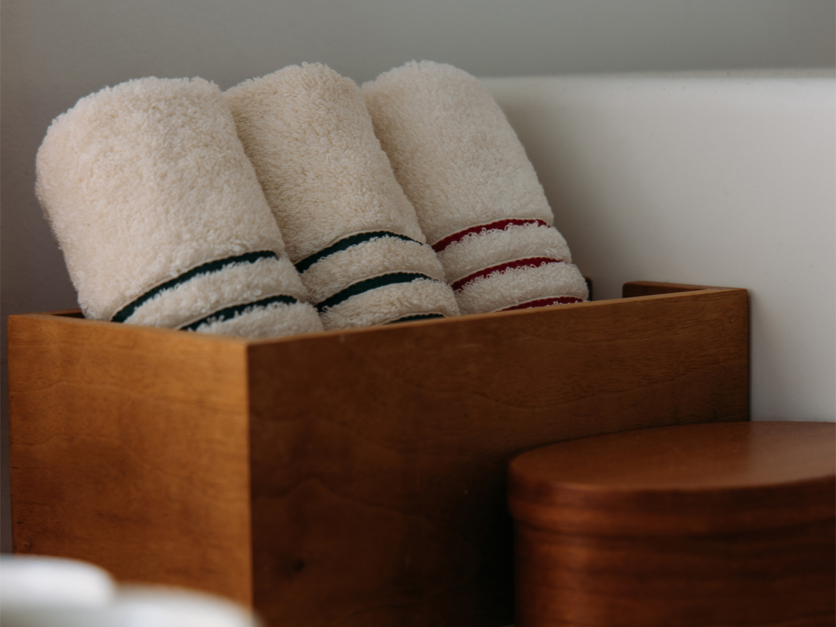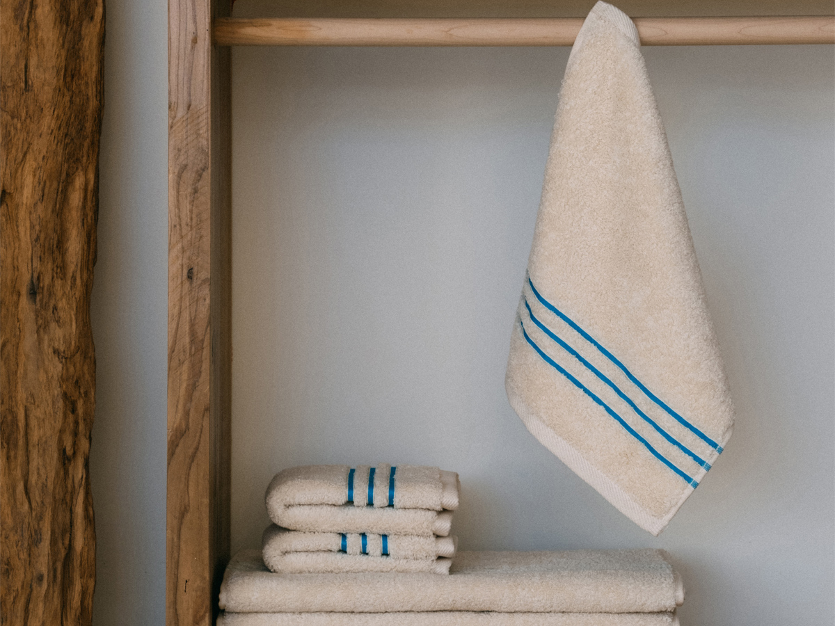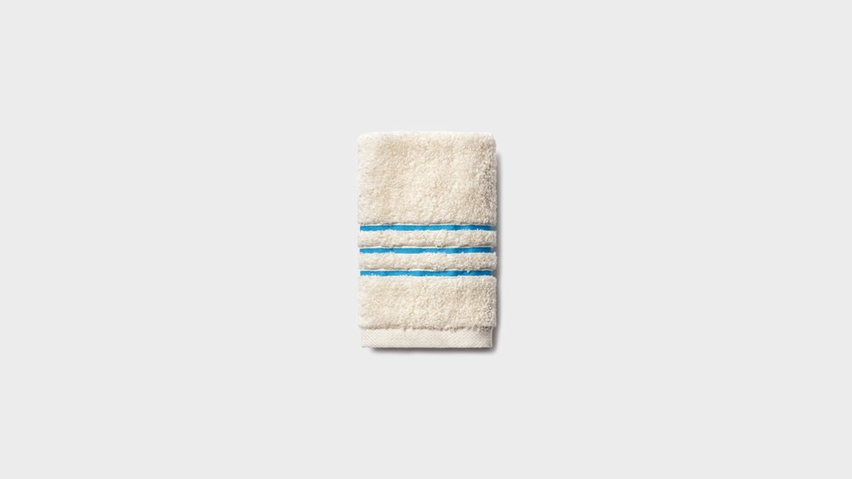 염색하지 않은 목화 본연의 색상의 베이스와 세 줄의 스트라이프가 인상적인 핸드 타월 세트입니다.