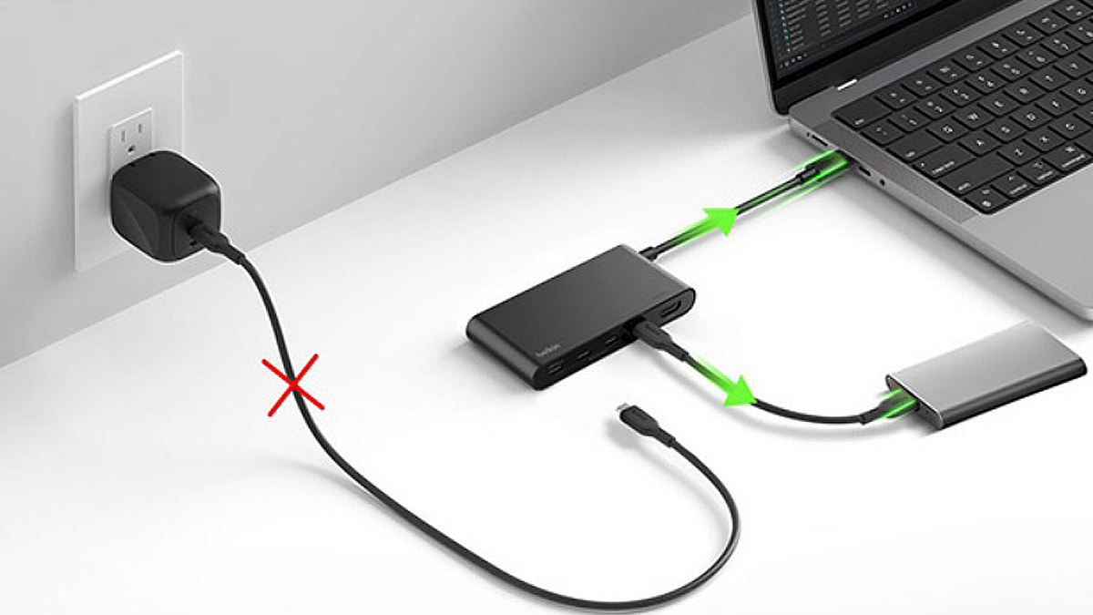 ※ 왼쪽 포트부터 75W, 90W, 100W를 지원하지만 허브 자체 내에서 항시 15W를 소모합니다.